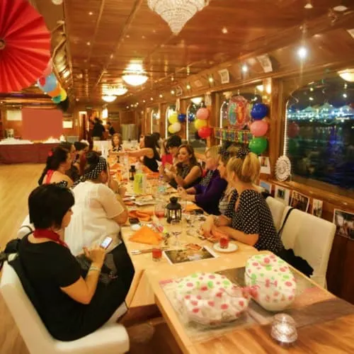 Designed to accommodate groups from 25 to 250 guests, this premium birthday cruise features international gourmet dining, lively music, elegant décor, and a captivating Tanura performance. To make your celebration even more special, we offer optional add-ons such as custom birthday cakes, floral decorations, cocktails, and thoughtful gifts.