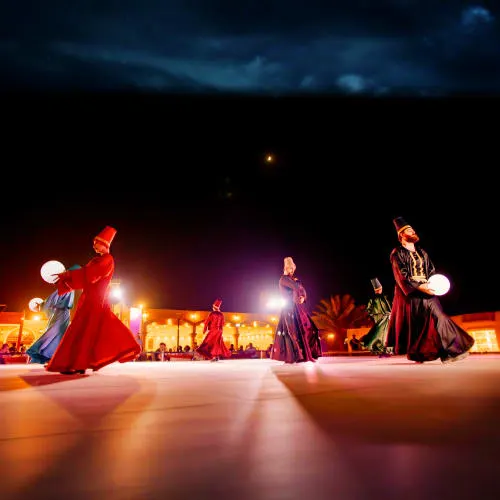 As the evening unfolds, savor a premium BBQ dinner featuring Arabic flavors with a modern touch, while enjoying captivating live performances by our graceful belly dancer and skilled Tanura artist. From welcoming hospitality to serene desert surroundings, every detail is curated to deliver an unforgettable desert experience.