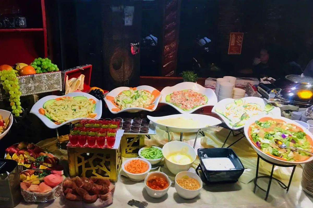 A Gourmet Voyage: Your journey begins with a refreshing welcome drink followed by a lavish buffet. Savor a blend of authentic Emirati flavors and international gourmet specialties, finished with an array of “luscious desserts” and unlimited refreshments.